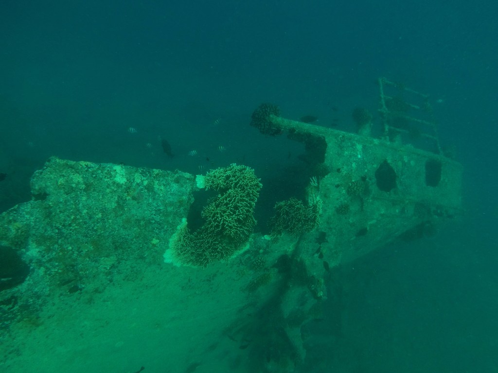 We finished up diving, grabbed lunch, and then took a taxi to Million Dollar Point. Million Dollar Point is where the US military dumped millions of dollars of equipment after WWII when the government of Vanuatu did not respond to a request about the US government selling them the equipment. When we got there, the place was deserted; normally any place that has an entrance fee has someone to collect the fee. It was windy, and the surf was pretty rough. I swam in through a bunch of murkiness and came across a ship. I then swam around and saw jeeps, trucks, forklifts, and a whole bunch of other undistinguishable things that have been on the bottom of the ocean for 70 years. Unfortunately, visibility wasn’t the best, and it was pretty rough, so Katy did not make it out very far. Eventually, someone came to collect our fee, and some more tourists came. We then spent over 20 minutes waiting for a taxi back to town and eventually one came, and it had 4 kids and a women in it already. They were just going a little further, so we jumped in the back and had an entertaining ride for a few minutes (Katy saved one of the kids from leaving her sandals in the car at the end of their ride). We then got dropped off at our accommodation, and a miscommunication between Katy and I caused us to get ripped off, but it only cost us an extra $4.