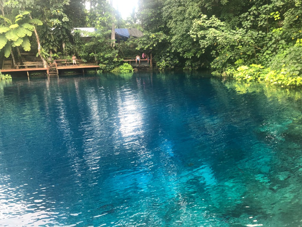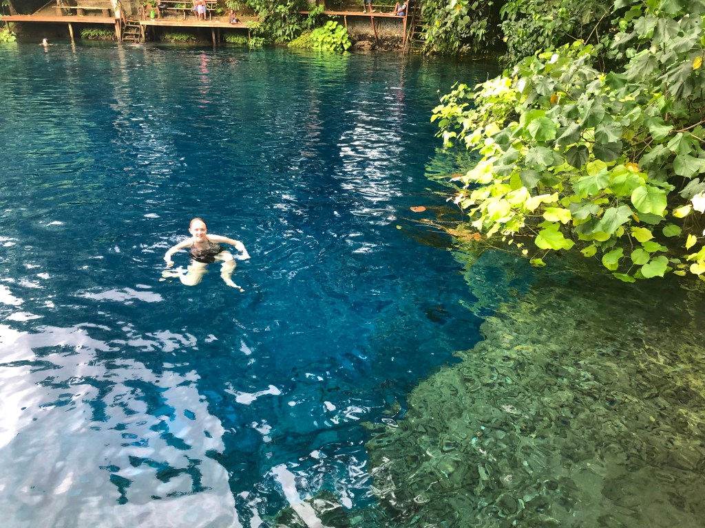 We then headed to the Nando Blue Hole. Vanuatu is a country that apparently has multiple types of blue holes. They have ocean ones with amazing snorkeling and freshwater ones with super clear, albeit cold, deep blue water. During the drive to the blue hole, we passed our driver’s village and saw his family’s 52 head heard of cattle. There are several blue holes that you can visit, and they all charge between $5 and $10, so we went to the one that our driver said was the best (inevitably it was a $10 one). Unfortunately, the clouds rolled in on our way to the blue hole. When we got there, we were the only people there and were able to get some great photos before people descended into the hole. It was chilly without the sun, but we finally built up the courage to jump into the hole. It definitely was chilly, but not as cold as I was anticipating. A family event soon descended onto the hole. Like the Cook Islands, Ni-Vanus tend to wear a lot of clothes when they go swimming. Men sometimes don’t wear a shirt, but often do. Women frequently wear their entire outfit into the water, including denim. The weather did not perk up, and so we decided to head back to town. The blue hole was fun for a little and would have been more fun if it was hot, humid, and sunny outside.