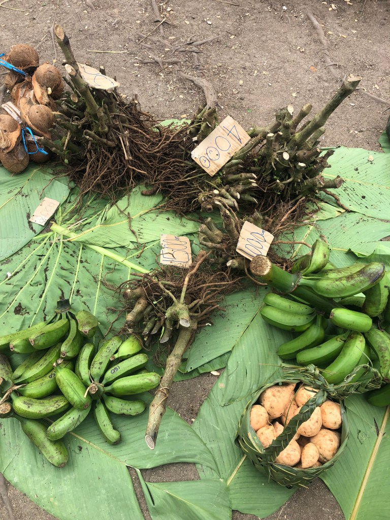 Kava and Vanuatu bananas for sale at the market. Interestingly, almost everything had a price on it. You can see the price on two of the banana bunches.