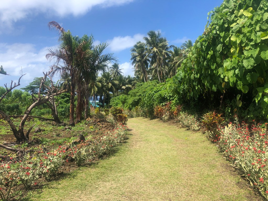 We disembarked, and John from Chez Maureen Bungalows was able to find us easily since we were the only westerners on the plane. John informed us that Maureen was not there to meet us since her mother had passed away at 8pm the previous night. We then walked across the runway and down a road to the ocean and the bungalows. The bungalows were the most expensive place that we stayed at $89 per night, but we were able to use the fourth night free to get them for around $75 per night. The property was gorgeous with a lot of flowers around the two bungalows. There was not a beach, but there were hammocks, picnic tables, and snorkeling right from the property. The sandy beaches on Gaua are on the north and south side of the island, not the eastern side where we were staying.