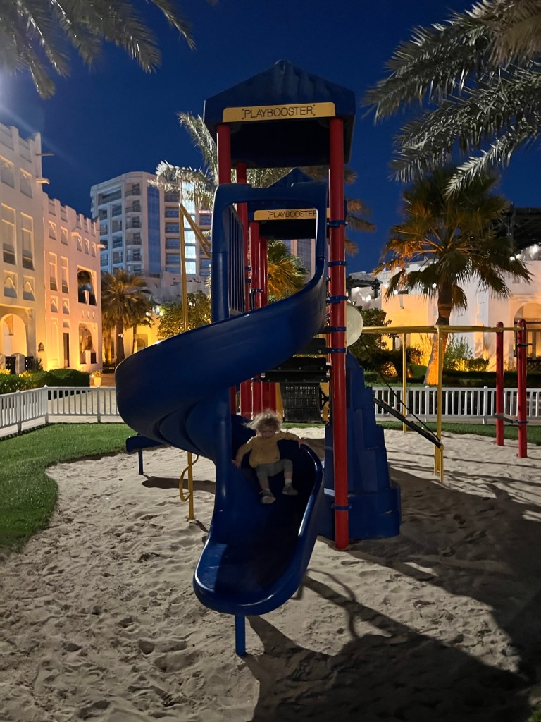 Rose and I ate some Qatar-style Uber Eats and waited for Katy and Archer to arrive, but Rose did not last that long and promptly fell asleep. We were planning on going to the beach and enjoying the amazing pool the next morning, but it turned out that we all slept until noon. Luckily, we did not have to leave the property until 1:30 PM to catch our 4 PM flight to Baku, Azerbaijan.