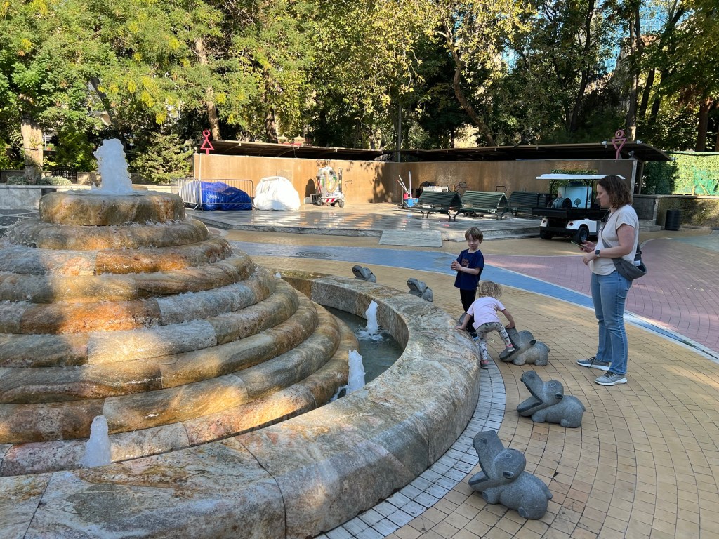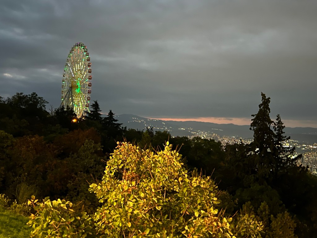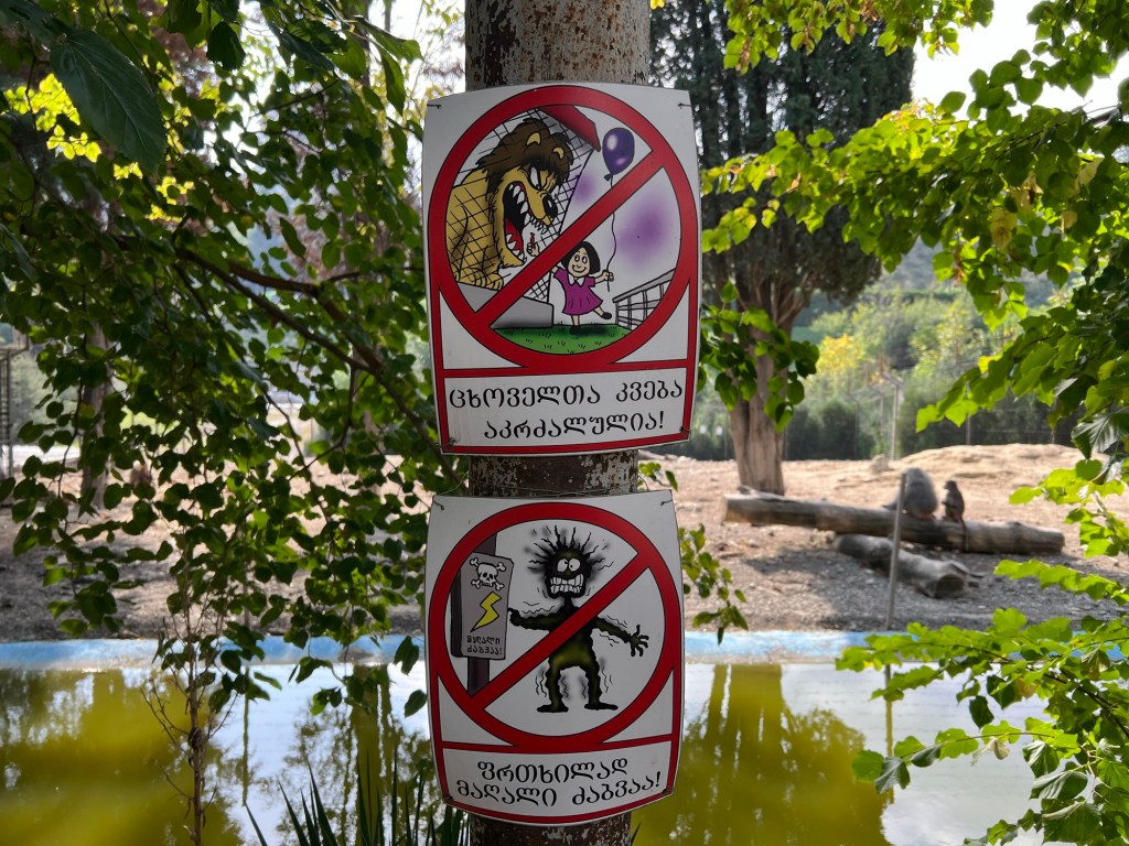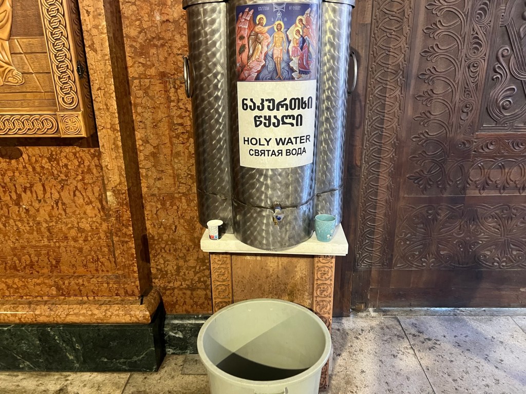 The latte art on my morning beverage after the grocery store unexpectedly didn’t open until 9a when the plan was to get food for the kids and play in the park. Well I showed up before 8a, not even thinking it wouldn’t open until 9a. Slightly grumpy, then had AI find me this coffee shop that had breakfast that happened to be near the big church we wanted to go to, so I came back and got Katy and an Uber whisked us off.A giant church in the middle of Tbilisi, visible from most places in town. Newly built. Shiny. Two communal cups you can use to drink the holy water. Due to its holy nature this is sanitary. Enough water in the bucket for a little bathing, but I only saw people drinking it from the blue cup. Tbilisi zoo is definitely a grade C zoo. Does not compare at all to the amazing Baku zoo. Total admission price $3.75 for 3 people, Rose freeRose rode the swings and cars. A little lower stakes than the Ferris wheel. I asked Katy if I could ride the Ferris wheel with Archer, her mouth dropped open, her right eye twitched, and then she turned around and continued walking like I had said nothing. I took that as a no.The last 3 days archer and I went out and explored while Rose napped. Katy chose to stay in and nap/decompress/not see any humans. Today I was feeling rather “short” with the kids, and Katy let me go and get some Georgian tea to take home and have a beer and decompress. The tea shop was not what I was looking for, but the beer was cold.We then went to go to the digital art museum. Turns out that the entries are tours every two hours. Rose then spotted a donut with pink icing and sprinkles and the options were to give her the donut or else. We chose the donut.We split a tarragon flavored local naturally sparkling mineral water. Way better than it sounds. This is now the only water Katy wants to drink in Georgia, even if it is $1 vs $0.15 for a bottle. High roller she is.