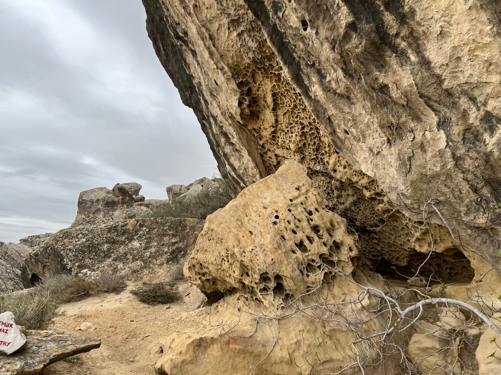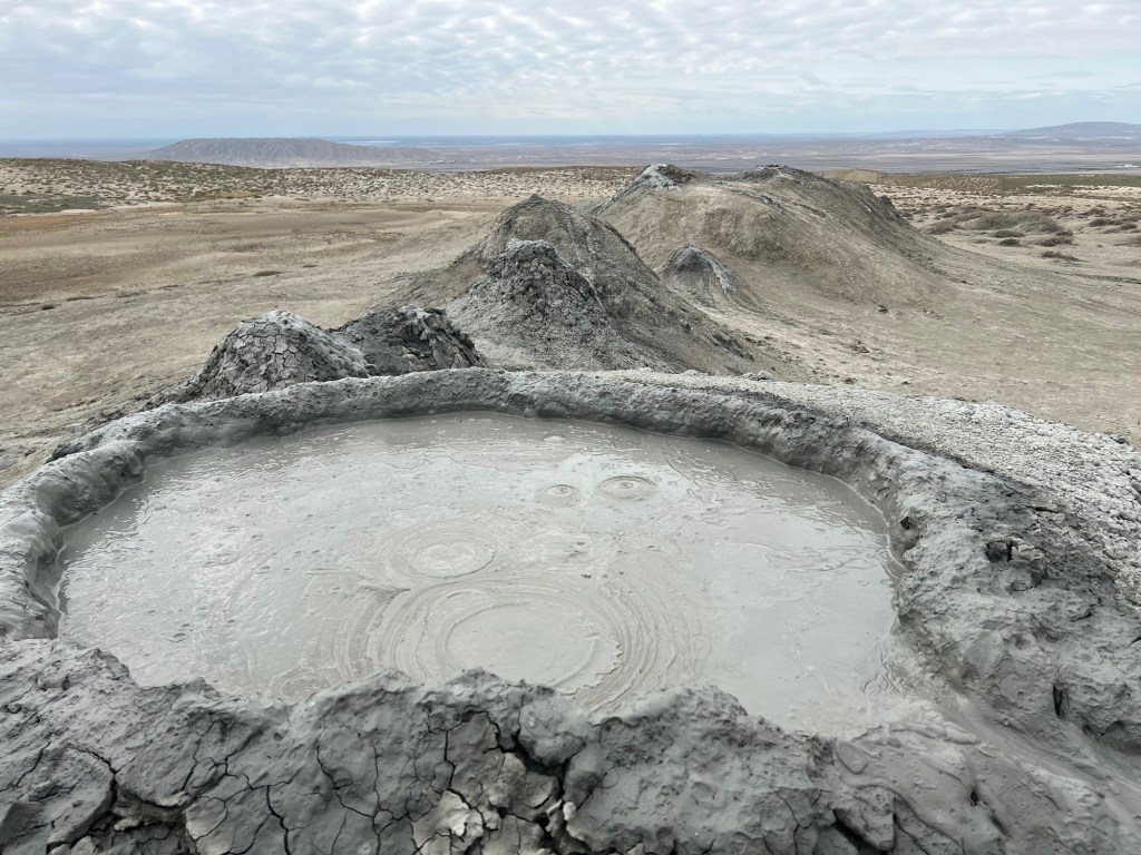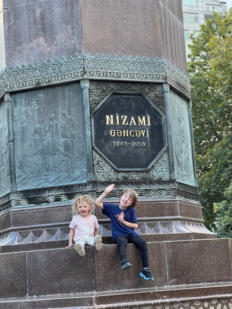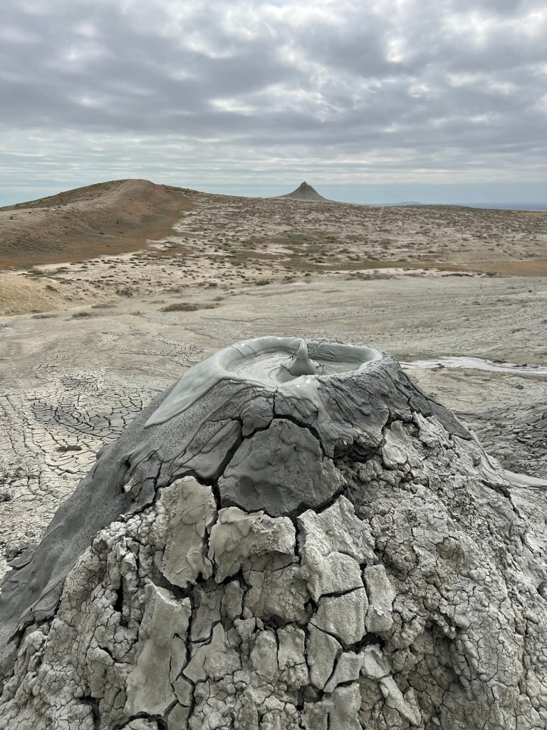 The zoo was really good. There were a lot of baby animals on display (including a deer born that morning), maybe not US standards in that respect. A very good playground at the zoo ($10). Not crowded. There were more workers making sure you didn’t feed the animals than visitors. Archer and I went out twice while Rose napped (Katy did once with Archer). This place tried to scam us by having 2 menus with different prices. I just so happened to take a picture of the menu and Archer since he was so excited to order his milkshake, and so I had proof of the original menu prices, and they got rather flustered, and I avoided the scam. The market was a touch too stressful with Archer’s wandering hands and Rose having zero interest in holding hands, listening, or being held. Short visit. Gobustan mud volcanos. These are crazy. They are bubbling mud mini volcanos. I am sure you are like Yellowstone/New Zealand have those, cool. The kicker is that they are cold. The bubbles are probably methane and can be lit on fire. It is actively cool to the touch. People apparently put the mud on their faces as a mask (we didn’t).A bubble in actionWith the amount of mud throwing we were surprised that the mud splatters actually came out of our clothes, but it does help explain the 6 loads of wash we did in 5 days. We paid for another driver in a truck to take us to the “wild” mud volcanos instead of the tourist complex ones. I think getting up close and climbing around was worth it. Rose had the audacity to act her age at the petroglyphs so our visit wasn’t the longest or most thorough. This is more of a picture of a cool rock than a petroglyph. 2 year olds will 2 year olds, even in Azerbaijan This picture doesn’t due it justice, but Azerbaijan has the best blending of “traditional Islamic design” with modern buildings. Tons of the buildings built in the last 100 years show a blending of the architecture styles which I hadn’t seen on such a large scale before. It was really cool. Archer was so excited for his $0.45 ice cream cone from the cold case at the grocery store. Turns out they were coffee ice cream. My children did not go to bed until after 11pm. I am banned from buying any more per Katy.