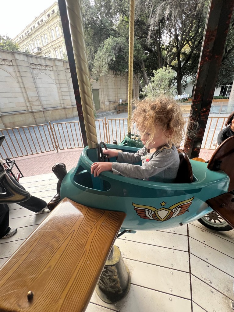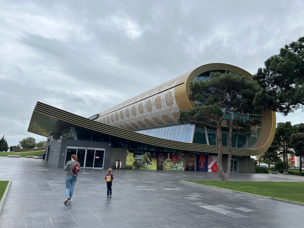 Azerbaijan has a lot of oil money and its leader must have read that pretty fountains are a good way to show off your wealth. Wandering our first morning looking for a place that served food before 9am (apparently uncommon in this part of the world). The coffee roaster we tried first had a broken espresso machine. We stayed in the Old City, a 1 minute walk from the Maiden Tower in the picture. Our 3 bedroom apartment was ~$65 per night. Walking around old town. Lots of street cats and kittens. In the morning you can see food out where people are feeding them and often in corners are small water dishes. Did not see any mice. The children exploring the view out of the 400+ year old palace window in the old town. The playground next to our apartment. It gets a D and Azerbaijan gets a C- for public playground access. There were a few more outside of the tourist areas we saw while driving and we did randomly come across one that wasn’t marked in Google Maps, I added it. The train simulator at the train museum, a museum that didn’t even appear in our guide book. I had done a decent job of adding pins to google maps, and it did help us several times with places to eat and random attractions like this. We had zero issues with English in Baku. The “authoritarian ruler” of Azerbaijan donated this train made out of gold to the museum. Entry to all tourist attractions had a foreigner price of normally $6 or $10 USD and kids were free, often $1-$2 for locals. The train museum was in the building which was the original train station. The Flame Towers dominate the city. At night they light up and have designs, pictures on them. Guess what. This is the carpet museum. It is supposedly one of the best museums in the country, but we couldn’t muster the energy to take the kids inside. Baku, which borders the Caspian Sea. There was a walkway with shops, malls, mini amusement parks, carousels, and greenery that was 50-100 yards wide that ran along the Caspian. We stayed a 4 minute walk from it. A walkway under the main road to get to the seaside. Katy took advantage of the many $0.60 vending machines to get a bottle of water in need. Our first day was shorts weather. The rest were pants weather. Baku is rather windy, and we had one cloudy day that averaged ~20 mph wind, the rest weren’t that windy. We rode many carousels ($1.80/kiddo and adults could stand next to them) Baku from the Maiden TowerArcher chose to sit this one out. Weather was mainly in the 60s with enough humidity to give some bounce to Rose’s hairThe seaside boulevard with a mall in the background. Baku was very clean with a lot of trash cans. We had dinner 3 nights in places that were very similar. They were all in vaulted basements like this. One had live traditional music. They were loud enough to drown out our children, to an extent.