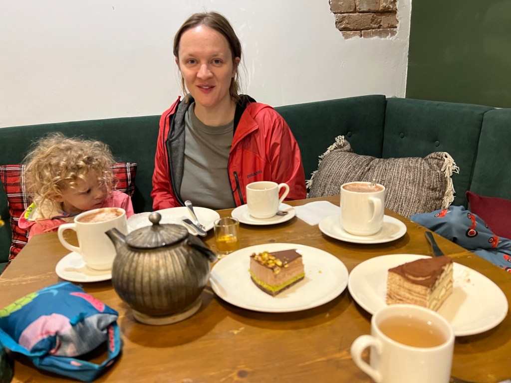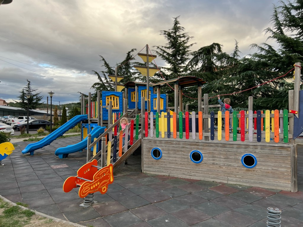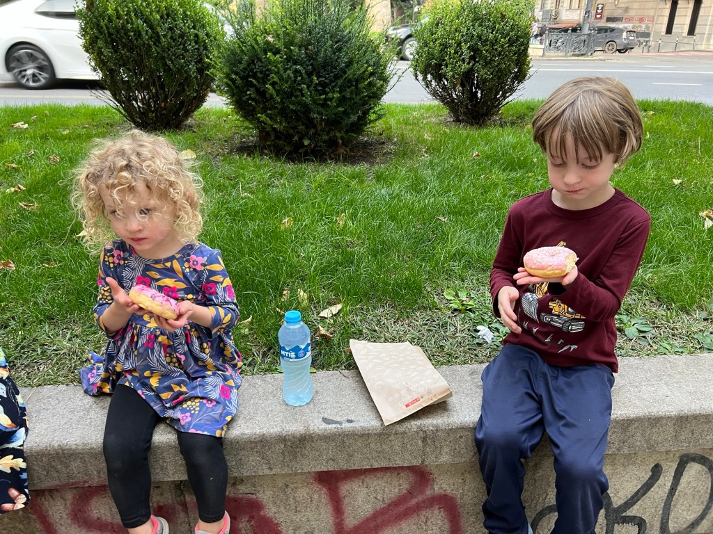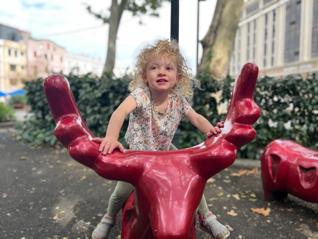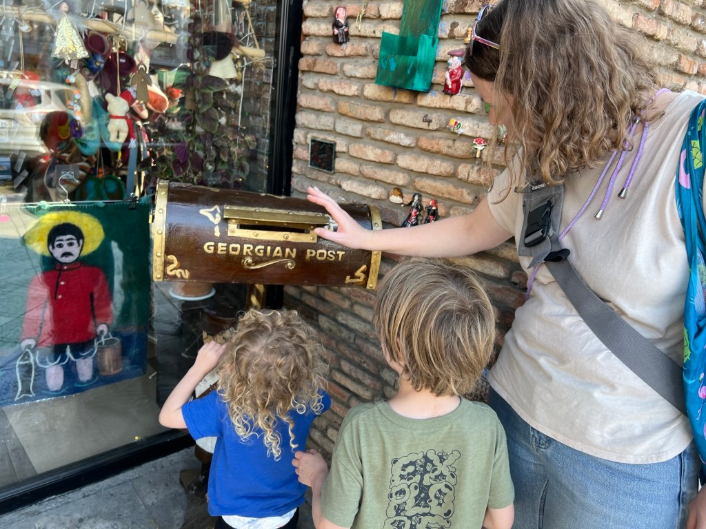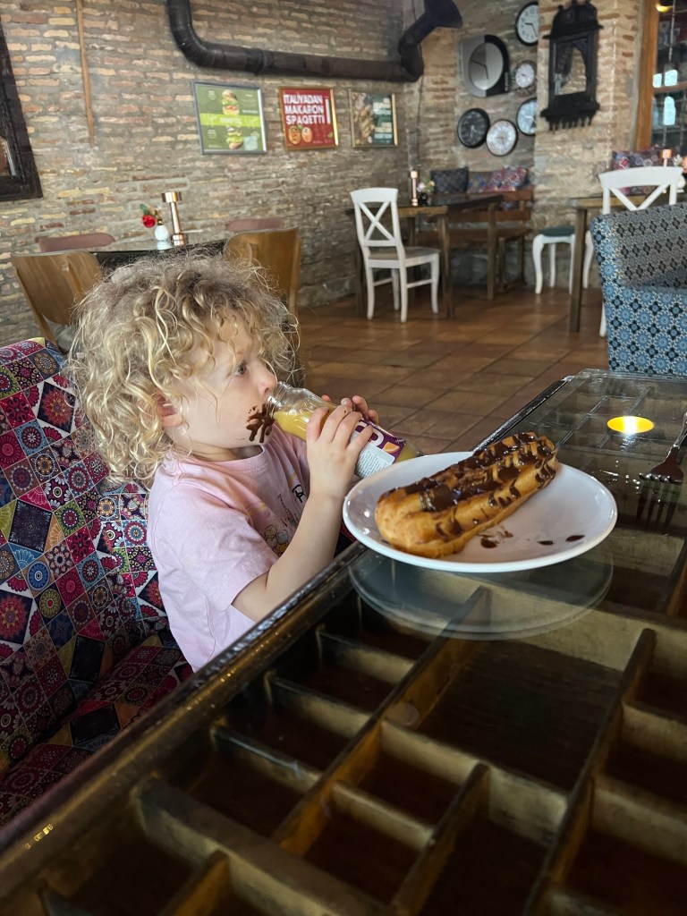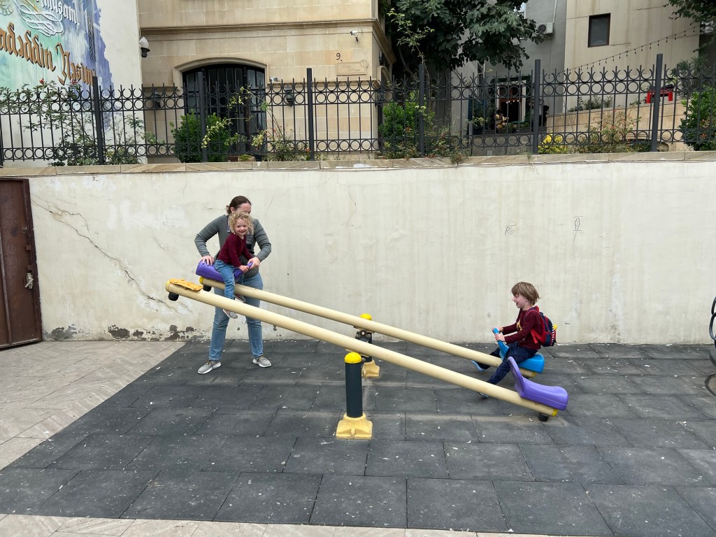 We arrived in Tbilisi a little before we could check in to our apartment in old town so Katy got a latte, and the kids got a cake from the bakery across the street. We then were able to drop off our bags, and we headed to a playground. We stumbled upon a playground that I didn’t know was there on the way to the one that I knew about.