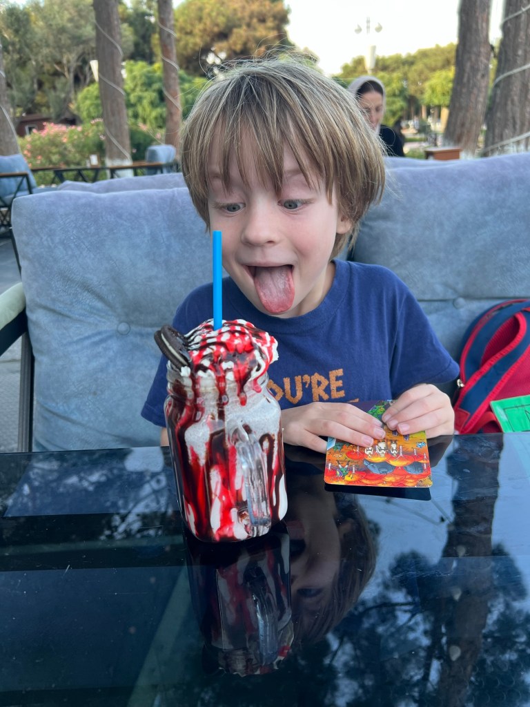 Archer and I went out for a milkshake and beer. We brought his new “butt” card game, but it was so complicated I didn’t have the gumption to do a game.