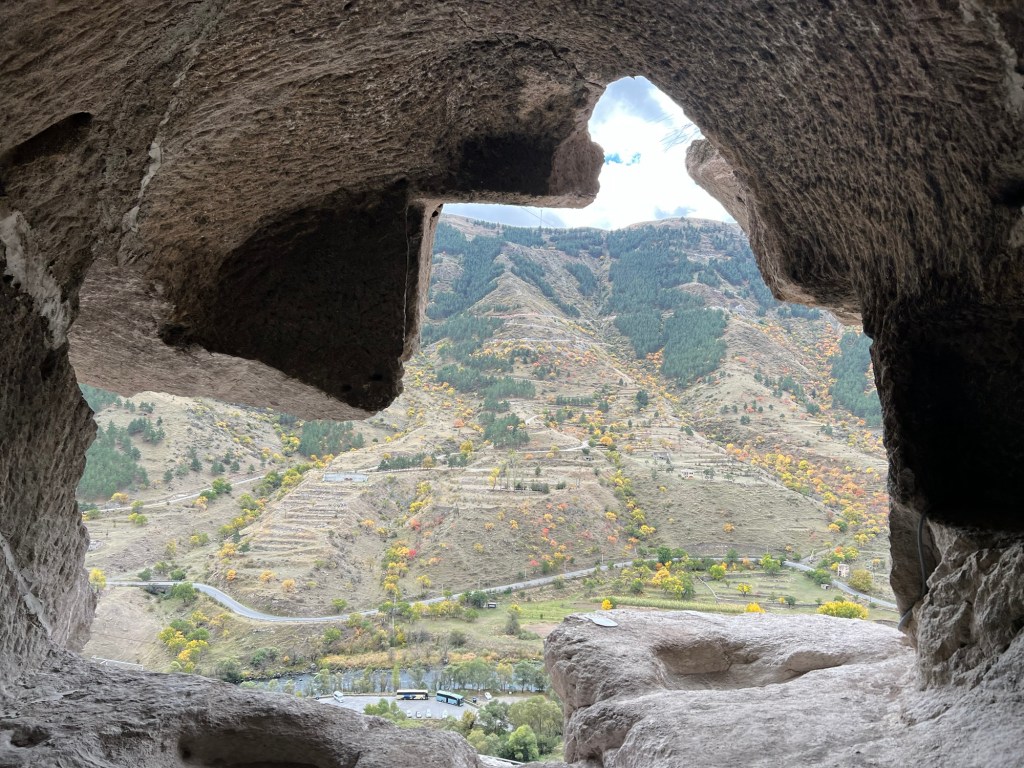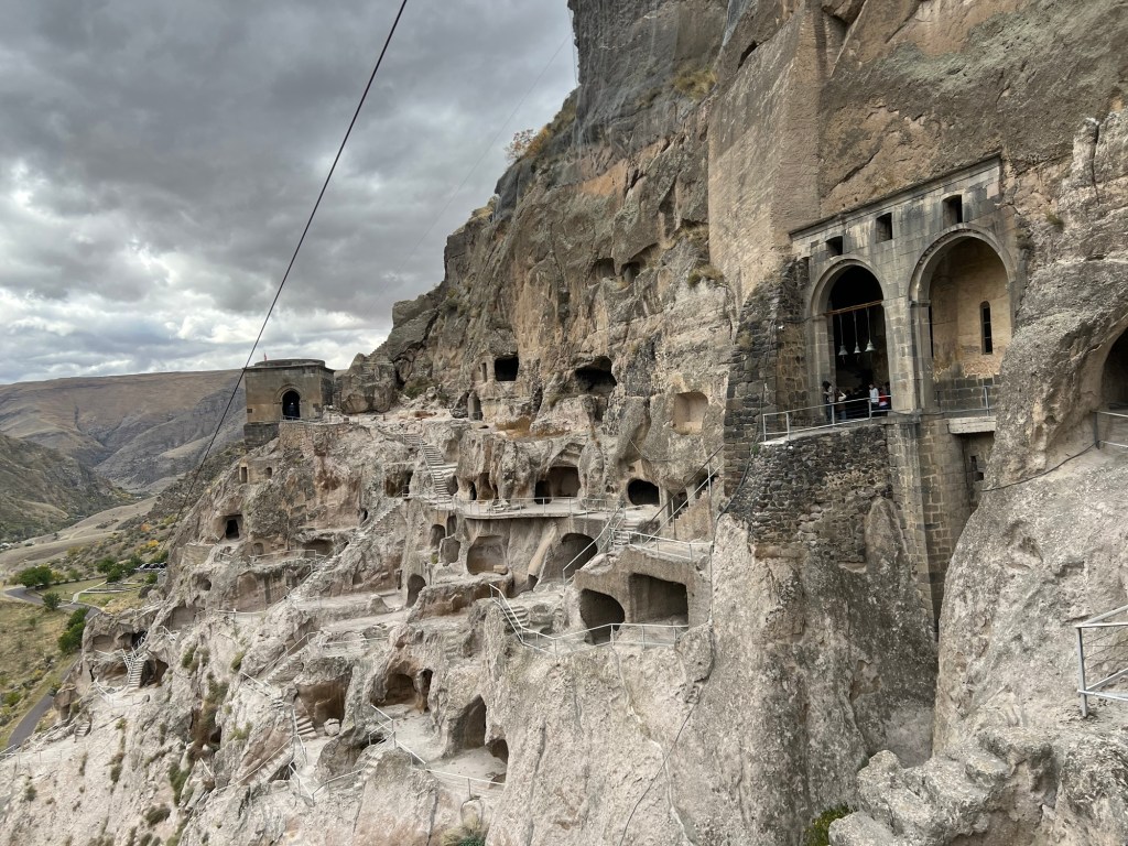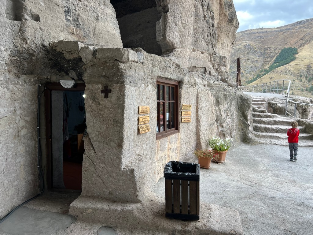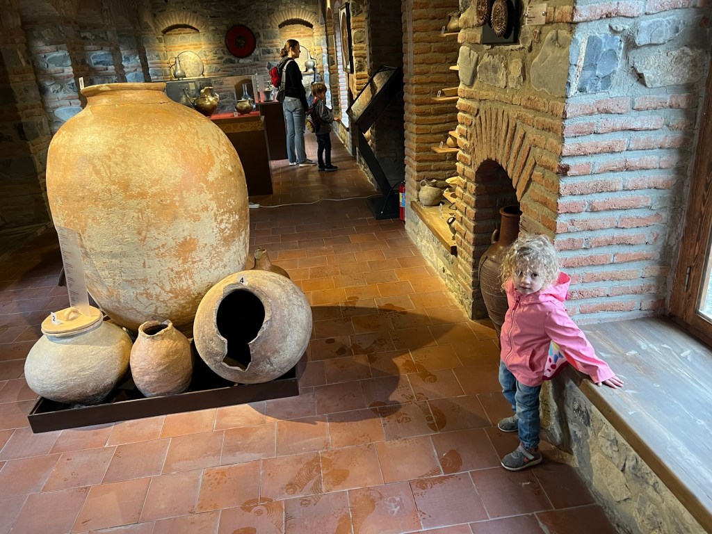 A church on our way to Borjomi. Our driver was rather grumpy. This was by far the largest concentration of tourists that we have seen. The is Borjomi, the town with the same name as the water. This was the original spring and the water came out nice and warm.. It also had a nice sulfer twinge, if you are into that sort of thing. The bottles were hand blown through the 1950s.I found this tree/vine interesting. No witty comments. We did some walking in the Borjomi park. There was a gondola, but we passed. More time for lunch which had a very good honey cake.This was our destination. The town of Akhaltsikhe. This is the castle which was rebuilt in 2011 and is now a tourist destination. Most tourists spend 90 minutes at the castle or spend one night on their tour. We stayed 3 nights here, they built a hotel into the castle when they rebuilt it. We got a room upgrade so our room is the second and third floor of the building you see right ahead the with wooden covered balcony’s on the third floor. Katy enjoyed the heated floors in the bathroom ($110/night)We saw this toy store coming into town. After the car ride we walked here and each kiddo was allowed to pick out a toy that cost less than $7. We now own more cheap Chinese junk.The kids favorite playground in town. Right next to the police station. It was the pirate ship playground. Only 1 slide was a little brokenThis gem of a jacket we purchased in Azerbaijan, but it has a built in costume/snow protection hood. It is chillier here, but not this cold.This is Vardzia, one of the main reasons we are in this area. It is the ruins of a cave city that was destroyed in an earth quake. There was minimal signage, and you could wander most places.There was a tunnel systemKaty loved the great footingArcher actually loved the footingWe bought a souvenir from this shop, it was cheaper than at the base Katy coming out of the exit tunnel. The exit was not labeled at all and after 2.5+ hours we were looking for it. It was grape harvest day, and a group of gentleman were picking the grapes at VardziaThe restaurant where we ate lunch gave the kids some of the grapes that were just picked. They were super yummy. The seeds weren’t huge and will help provide some fiber to keep Rose regular (which she needs)The ruins of a castle on our back from Vardzia (1.5 hours drive). I explored it while the kiddos and Katy explored a nearby playground. Katy was historicaled out. There was a street dog that Archer thought was fluffy so he named him “sluffy”This was our grumpy driver behind a vehicle filled with hay in every possible spot. We went to get some bread pastries for dinner. That was a bakery we bought from. The oven is a buried clay oven called a tone. This was a 4+ person operation. I saw a beer store. They had 6 taps. The pricing is per liter with 5=$1.75 with a 2 liter minimum. The only thing else they sold were “beer snacks” like nuts, dried fish, sausage, and cheese.Views of Akhaltsikhe from one of the many towers we climbed up. The castle was a conglomerate of styles and religions over the years. I wasn’t able to find true before pictures. They had a museum that we went through quickly that was one of the nicest small history museums I have been to. The lighting on each exhibit was what made it. We found a treasure chest that was unlocked… No comment. Archer has collected many keys. He is now trying to unlock all doors he comes across. He has concluded he needs more keys. Cannonballs the Russians fired at the castle when they attempted to take it over. First time they failed, second time they succeeded.Georgia has really good fall colors. There is a bush that turns a really great red color that is in the mountains, and this vine like plant that is more of a deep red. Archer literally is trying his keys in every lock that we come across. The door may look old, but the masterlock isn’t. The real question is will Armenia have as many $0.37 vending machines. They are Archer’s favorite. This carousel might have been the roughest one so far, it didn’t even go up and might have been made in someone’s garage. Bye Georgia