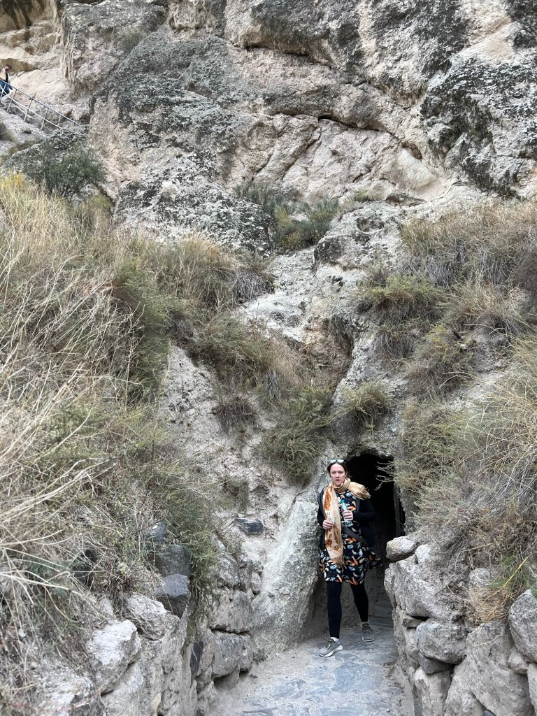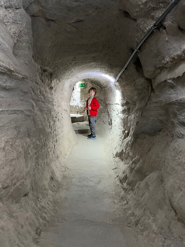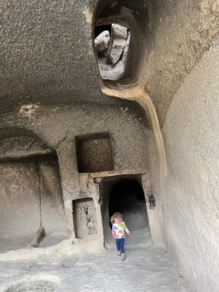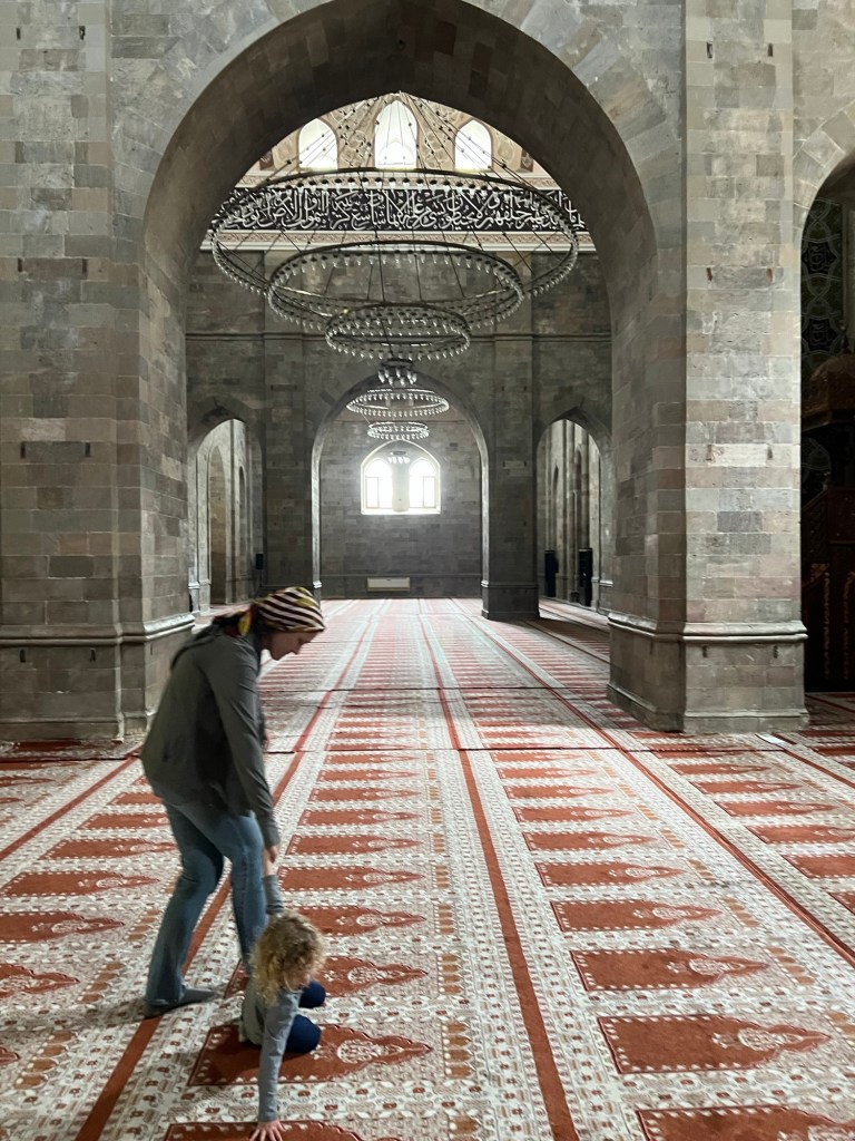A church on our way to Borjomi. Our driver was rather grumpy. This was by far the largest concentration of tourists that we have seen. The is Borjomi, the town with the same name as the water. This was the original spring and the water came out nice and warm.. It also had a nice sulfer twinge, if you are into that sort of thing. The bottles were hand blown through the 1950s.I found this tree/vine interesting. No witty comments. We did some walking in the Borjomi park. There was a gondola, but we passed. More time for lunch which had a very good honey cake.This was our destination. The town of Akhaltsikhe. This is the castle which was rebuilt in 2011 and is now a tourist destination. Most tourists spend 90 minutes at the castle or spend one night on their tour. We stayed 3 nights here, they built a hotel into the castle when they rebuilt it. We got a room upgrade so our room is the second and third floor of the building you see right ahead the with wooden covered balcony’s on the third floor. Katy enjoyed the heated floors in the bathroom ($110/night)We saw this toy store coming into town. After the car ride we walked here and each kiddo was allowed to pick out a toy that cost less than $7. We now own more cheap Chinese junk.The kids favorite playground in town. Right next to the police station. It was the pirate ship playground. Only 1 slide was a little brokenThis gem of a jacket we purchased in Azerbaijan, but it has a built in costume/snow protection hood. It is chillier here, but not this cold.This is Vardzia, one of the main reasons we are in this area. It is the ruins of a cave city that was destroyed in an earth quake. There was minimal signage, and you could wander most places.There was a tunnel systemKaty loved the great footingArcher actually loved the footingWe bought a souvenir from this shop, it was cheaper than at the base Katy coming out of the exit tunnel. The exit was not labeled at all and after 2.5+ hours we were looking for it. It was grape harvest day, and a group of gentleman were picking the grapes at VardziaThe restaurant where we ate lunch gave the kids some of the grapes that were just picked. They were super yummy. The seeds weren’t huge and will help provide some fiber to keep Rose regular (which she needs)The ruins of a castle on our back from Vardzia (1.5 hours drive). I explored it while the kiddos and Katy explored a nearby playground. Katy was historicaled out. There was a street dog that Archer thought was fluffy so he named him “sluffy”This was our grumpy driver behind a vehicle filled with hay in every possible spot. We went to get some bread pastries for dinner. That was a bakery we bought from. The oven is a buried clay oven called a tone. This was a 4+ person operation. I saw a beer store. They had 6 taps. The pricing is per liter with 5=$1.75 with a 2 liter minimum. The only thing else they sold were “beer snacks” like nuts, dried fish, sausage, and cheese.Views of Akhaltsikhe from one of the many towers we climbed up. The castle was a conglomerate of styles and religions over the years. I wasn’t able to find true before pictures. They had a museum that we went through quickly that was one of the nicest small history museums I have been to. The lighting on each exhibit was what made it. We found a treasure chest that was unlocked… No comment. Archer has collected many keys. He is now trying to unlock all doors he comes across. He has concluded he needs more keys. Cannonballs the Russians fired at the castle when they attempted to take it over. First time they failed, second time they succeeded.Georgia has really good fall colors. There is a bush that turns a really great red color that is in the mountains, and this vine like plant that is more of a deep red. Archer literally is trying his keys in every lock that we come across. The door may look old, but the masterlock isn’t. The real question is will Armenia have as many $0.37 vending machines. They are Archer’s favorite. This carousel might have been the roughest one so far, it didn’t even go up and might have been made in someone’s garage. Bye Georgia