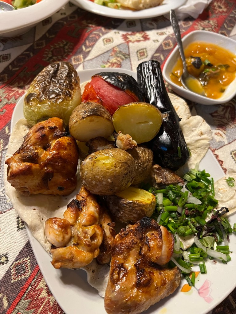 After nap we had some playground time and then went to the Gyumri Fish Restaurant, which is located next to a Russian military base. This restaurant is so “famous” that people drive 2 hours from the capital to eat, and apparently it is the center of some Russians’ trip to Armenia. They are a fish farm that does trout and Siberian sturgeon. BBQ Siberian sturgeon is what they are known for, and boy, was it delicious.