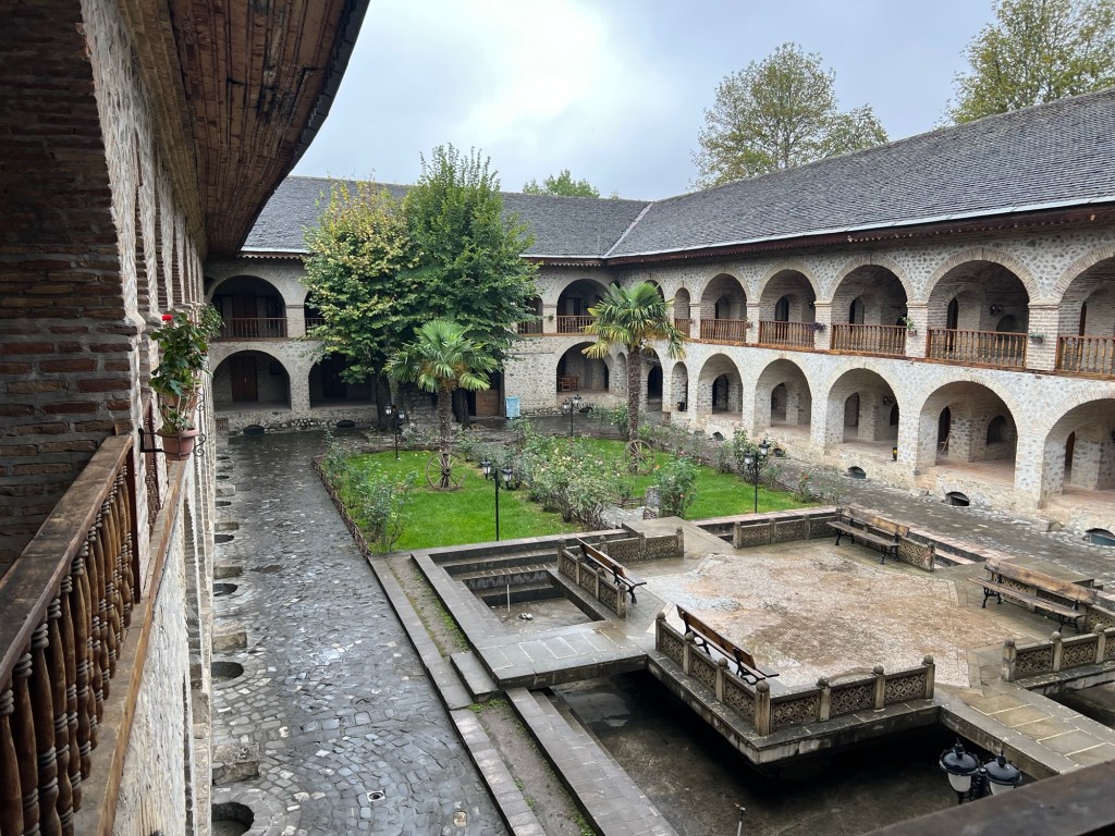 After five nights in Baku, we left. We planned to use the same driver from our first two days, who spoke significantly better English than I speak Azerbaijani, but not always well enough to manage extras. The night before we left, we had a communication hiccup about our route to Sheki. The price we had previously agreed on suddenly increased by 50%. Luckily, I had talked to several people and within 20 minutes had locked in a different driver with a Mercedes van, working seat belts, and fluency in English (and Italian), all at around 7 pm for the same price.
