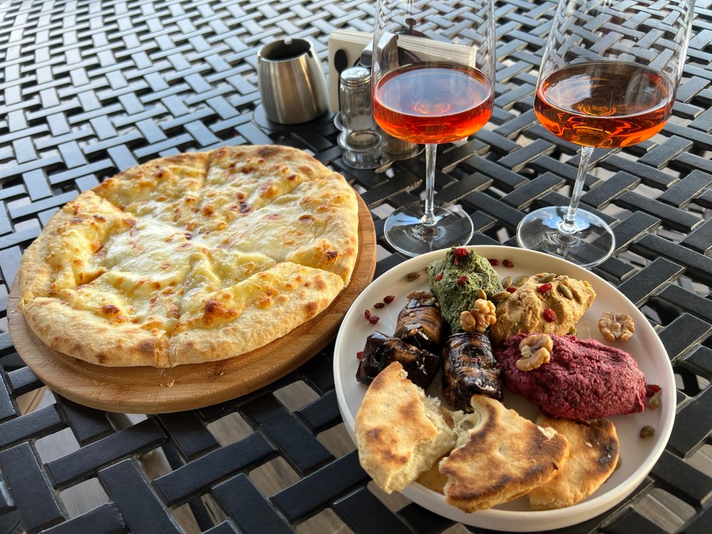 Our third stop for some reason wasn’t doing tastings at that moment, so we got 3 glasses to share and some more food.