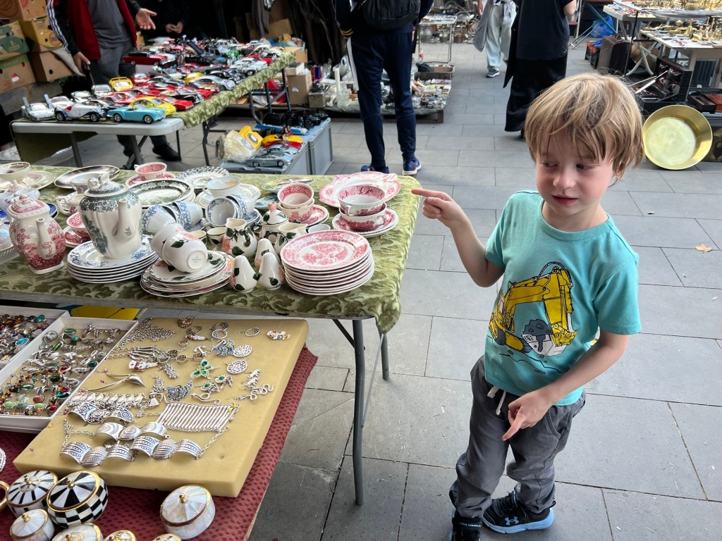 After lunch, we all walked through the flea market, and Archer came up with some grand ideas for what he wanted to spend his pocket money on, including a large axe.