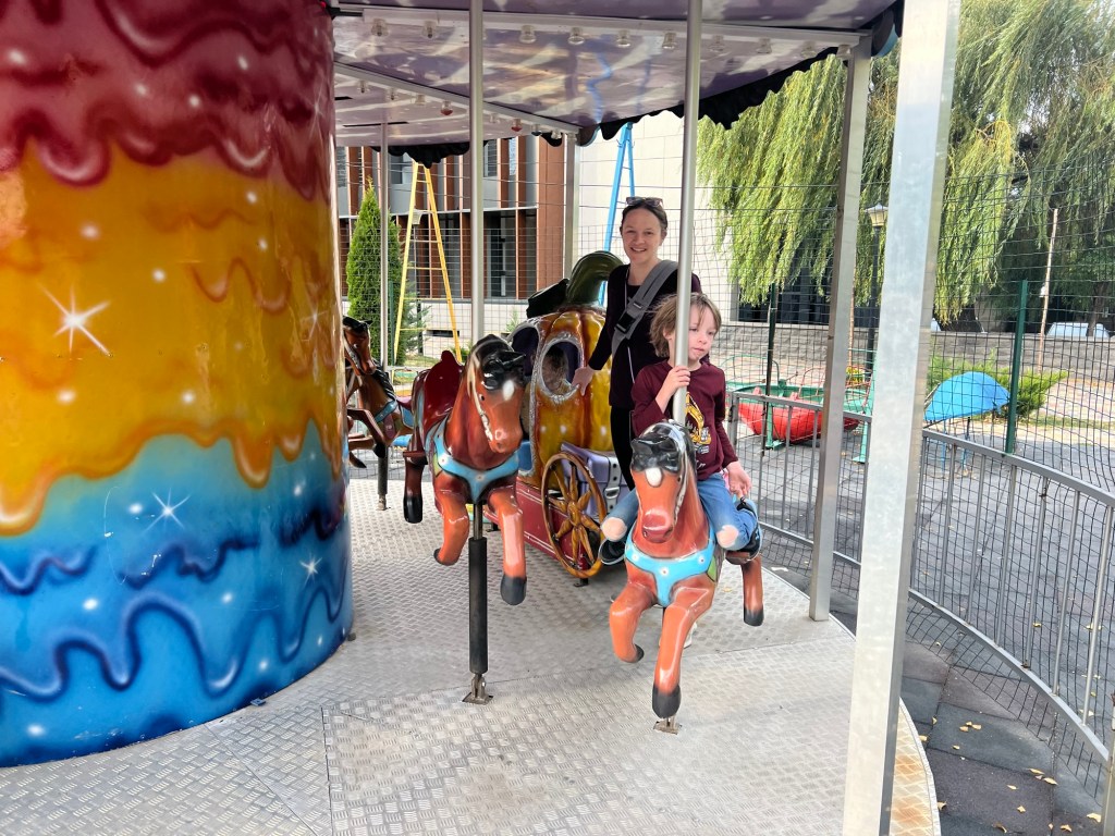 Day 2: Walked around the old city. Went to a smaller park with a few rides after nap. Went then went to a hipster restaurant in an old Soviet era factory.