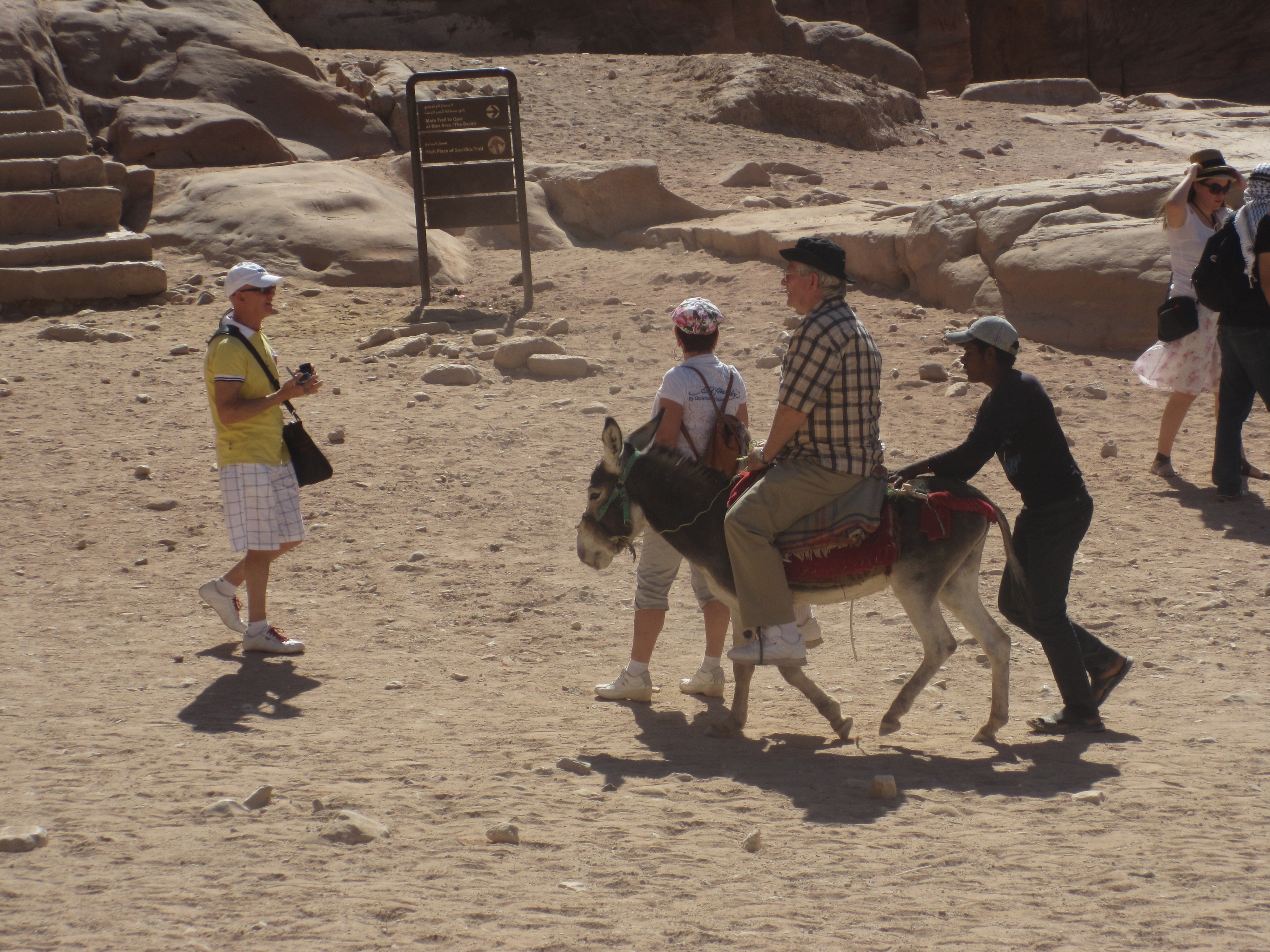 Everything in Petra is downhill to start and up hill to end the day.  This is the reason they have asses to bring Americans back up along with camels, and horse draw “carriages” that go at a really quick pace.