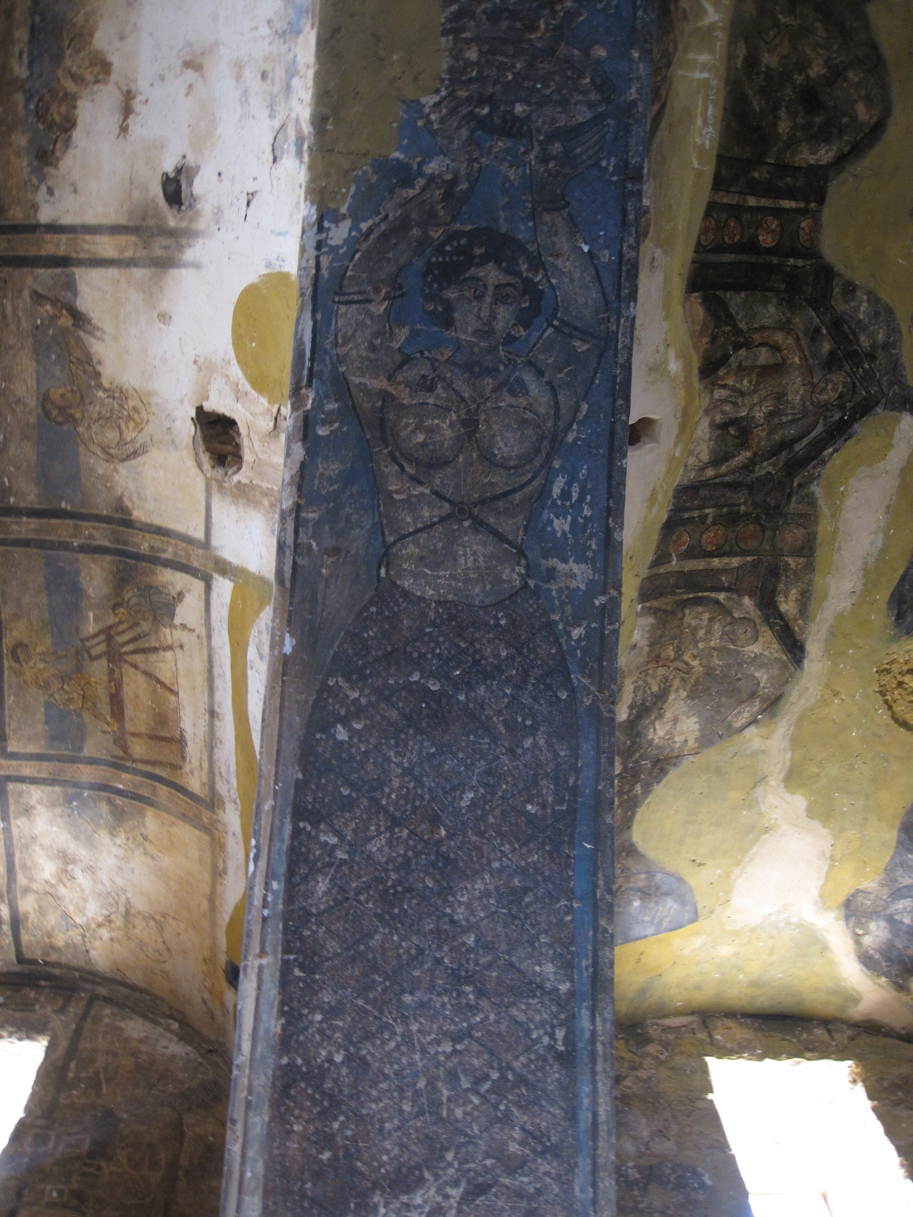 This is interesting because it was a painting in a hunting lodge ~700CE and the paintings depict nude women. It was painted by the Umayyad Dynasty, the first Muslim rulers. Now all women are completely covered. The city I am in now (Madaba) is 1/3 Christian and the women here are the first local women I have seen without their heads covered (even at the beach). There is the complete covering without an eye slit (rare, only have seen 3), then the covering with the eye slit (more common, but not very common), just the head covered with long sleeves and long pants, and just the head covered with the stereotypical one piece garb. The last two are the most common and it is very interesting seeing the different designs and styles of the “one piece garbs”. Some are impeccably tailored, others have side buttons or two rows or buttons, some are bedazzled, and some are baggy. I think that burkas are the very baggy ones, but there are not a lot of those.