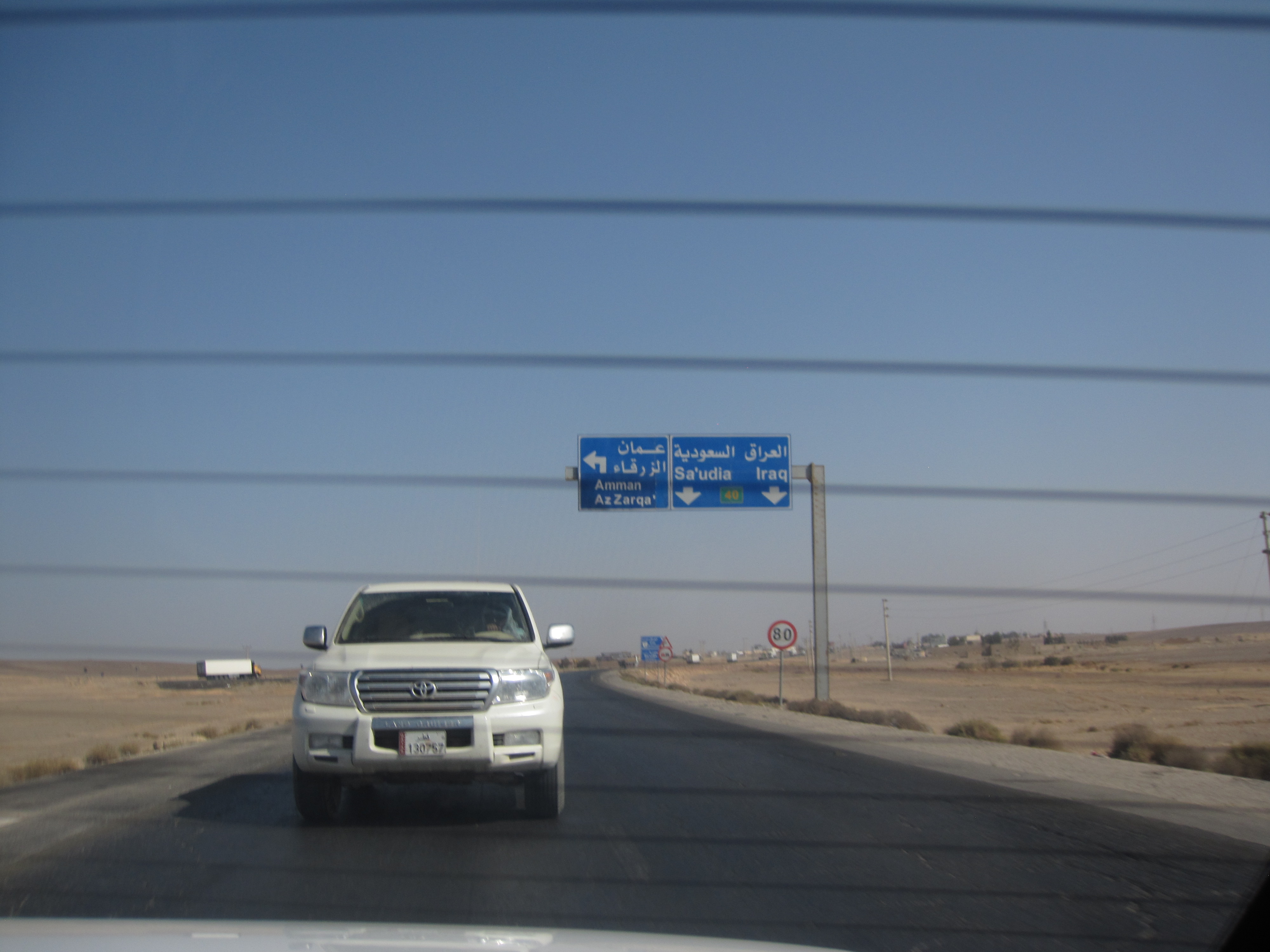 I am not normally near road signs that says the right lane for Iraq and middle lane for Saudi Arabia