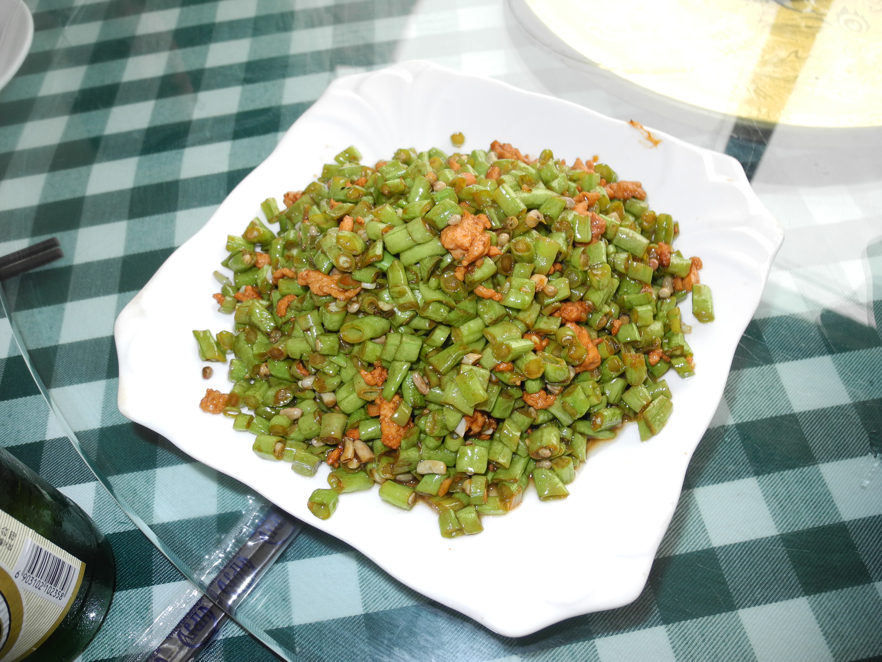 Best thing yet, crispy snap peas Szechuan style with peppers and peppercorns that will make your tongue tingle