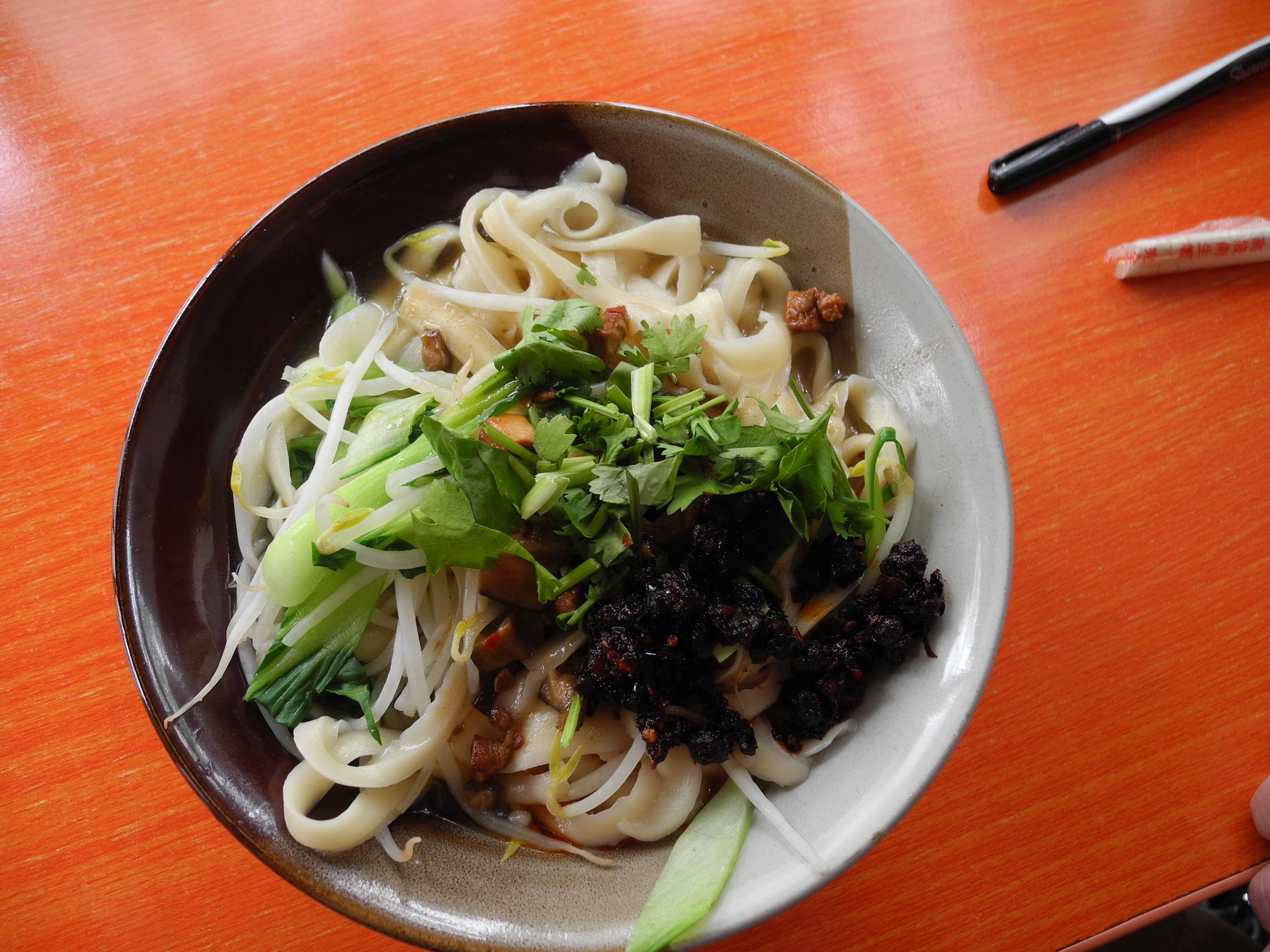 Homemade noodles with spicy fermented soybeans ($1.35)