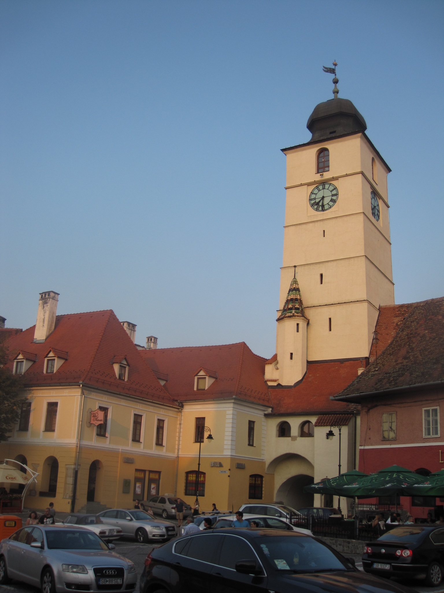 In the afternoon I took a train to Sibiu which in my mind was a town of 5,000 when I discovered I was mistaken and it is a town of 150,000. I think that I wanted to go to Sighausora which is a town of 20,000. The train station is the most decrepit one that I have seen with shells of long discarded trains, crumbling concrete, and an overgrowth of weeds (not the golden rod that covers the countryside). It took a walk of about 250 meters to discover the old town and why I came here.