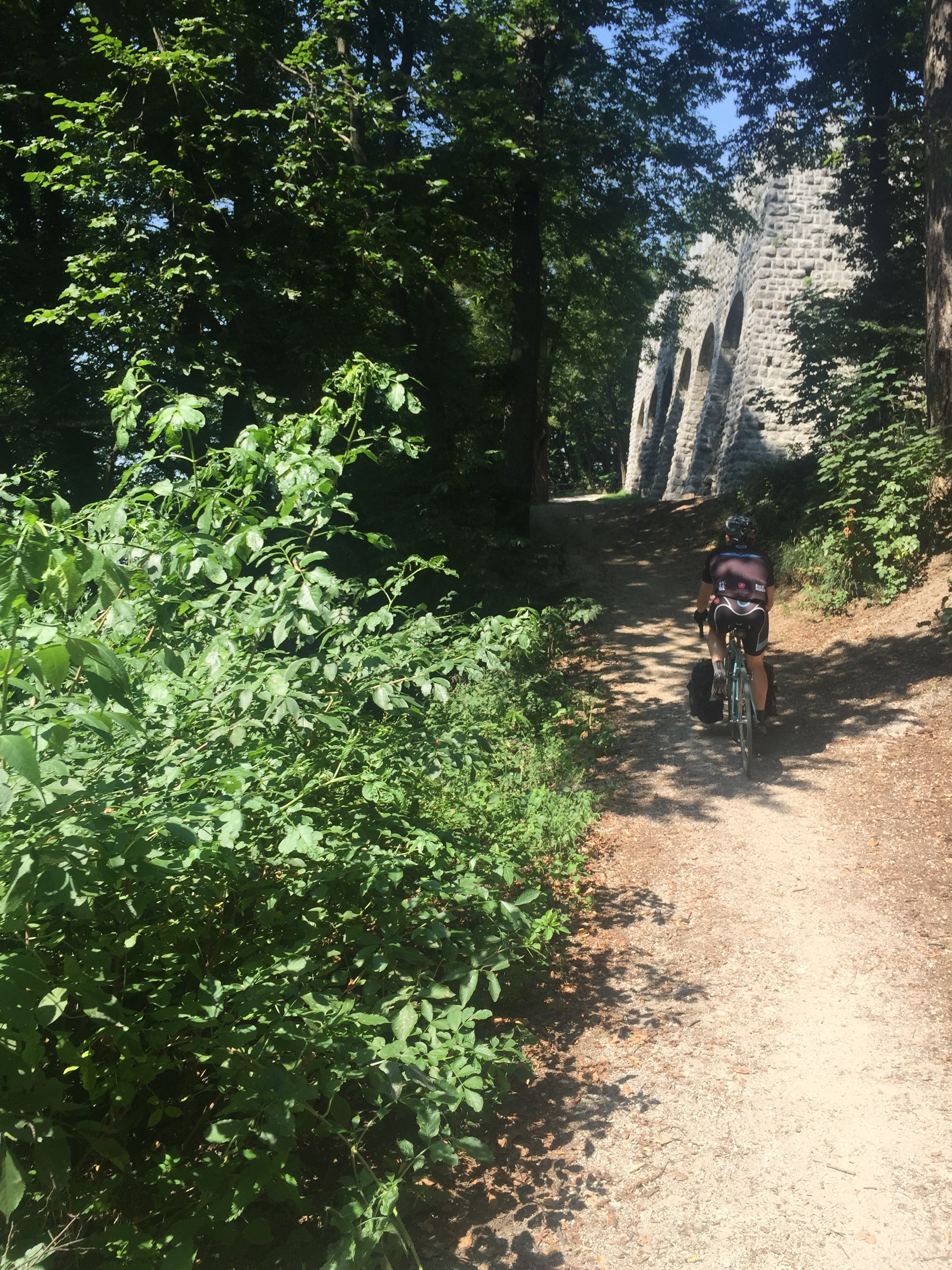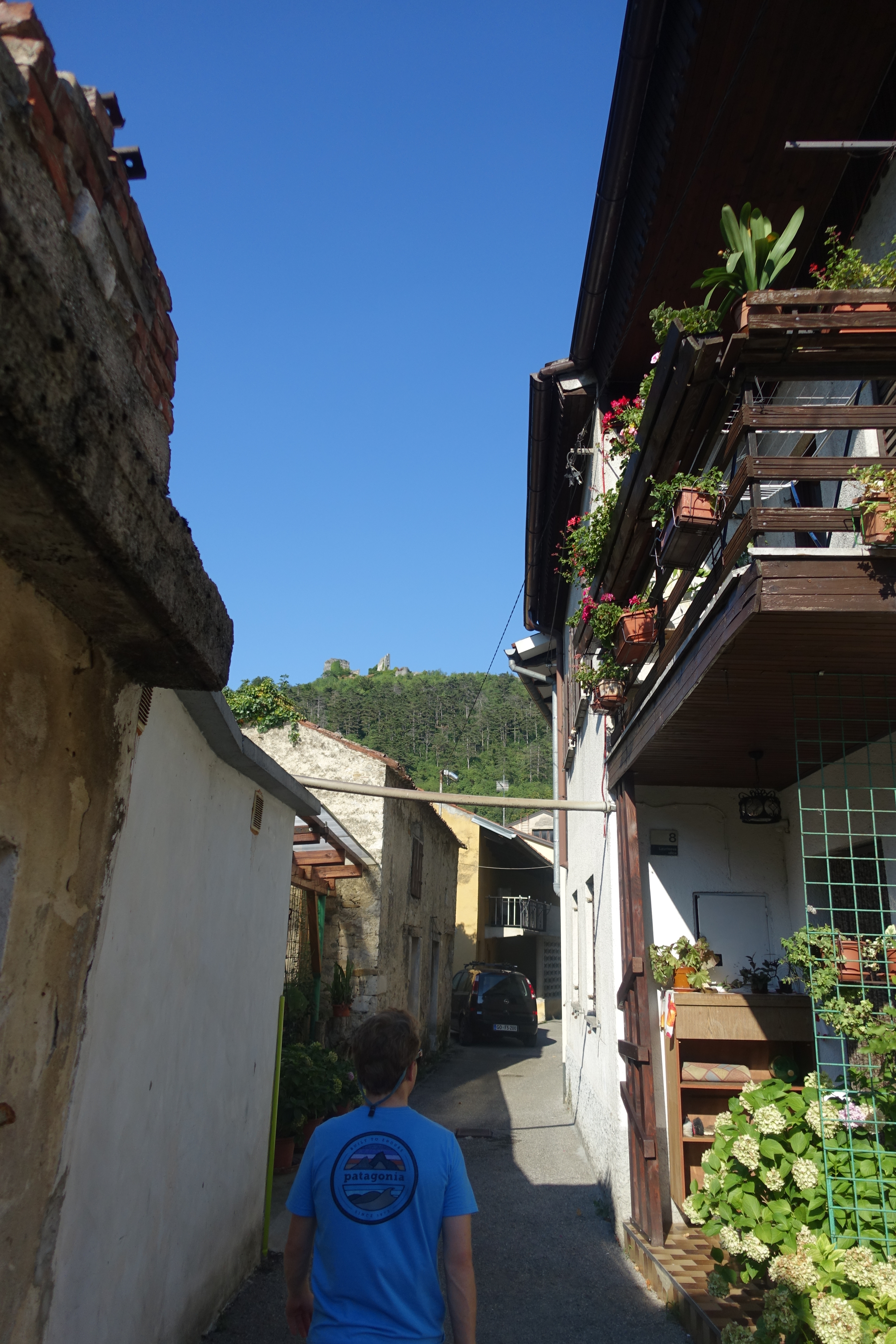 Wednesday morning I woke up and my tummy wasn’t super happy with me. We had a short (20m, 3000k ft elevation) day in store. We first rode to Pradjama Castle which is a castle built into the side of a cliff at the entrance to a cave. A robin hood (depending on your opinion) owner of the castle stayed there for a year while under siege and used a secret entrance via the caves for supplies. The castle and audio tour were actually more interesting than normal. At the castle we could tell we were on the Slovenian “tourist trail”. We saw a couple other cyclotourers including a break apart tandem.