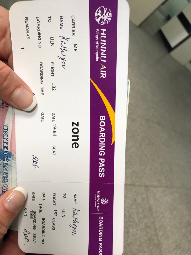 We had noticed that our ticket indicated that our flight Ulaanbaatar was going to take over four hours, which seemed rather excessive for a three hour flight between airports with minimal air traffic. We boarded our flight with boarding passes that only had our first name handwritten on them and were unlucky in getting the one row that didn’t recline.