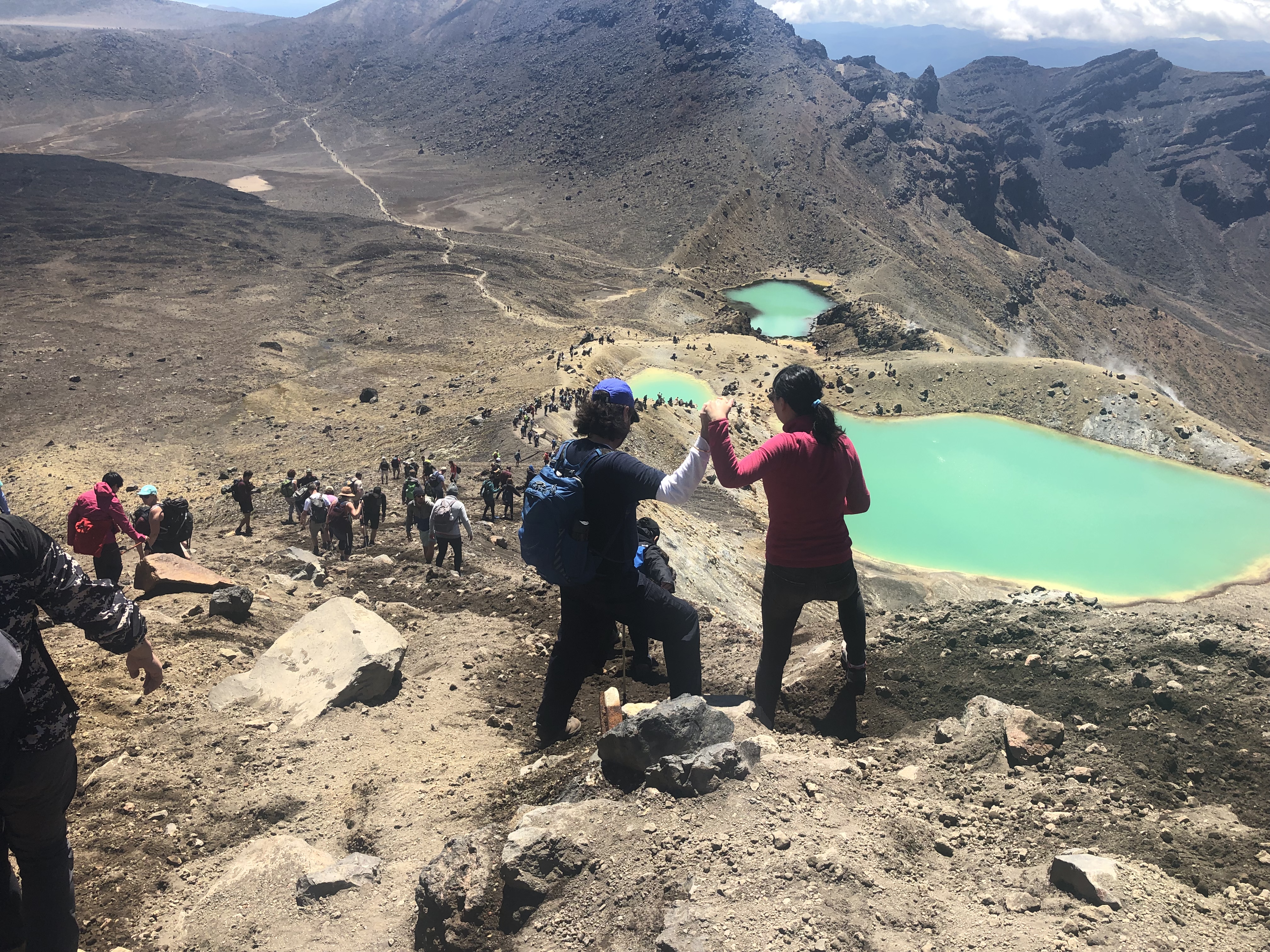 It is a mess of people. Imagine people stretched out single file for most of the hike, back to back to back, and the trail not being wide enough to comfortably pass people. It was not a pleasant hiking experience in regards to the number of people on the hike. Luckily 95% of the people on the trail headed the DOC’s official advice to do it in the direction that we did it. If not, it would have been that much worse, battling a constant stream of people going in the opposite direction. Saying all of that, the hike itself was fantastic. You walk past lava fields, steam vents, bright red volcanic rocks, sulfur pits, and hoards of slow people.