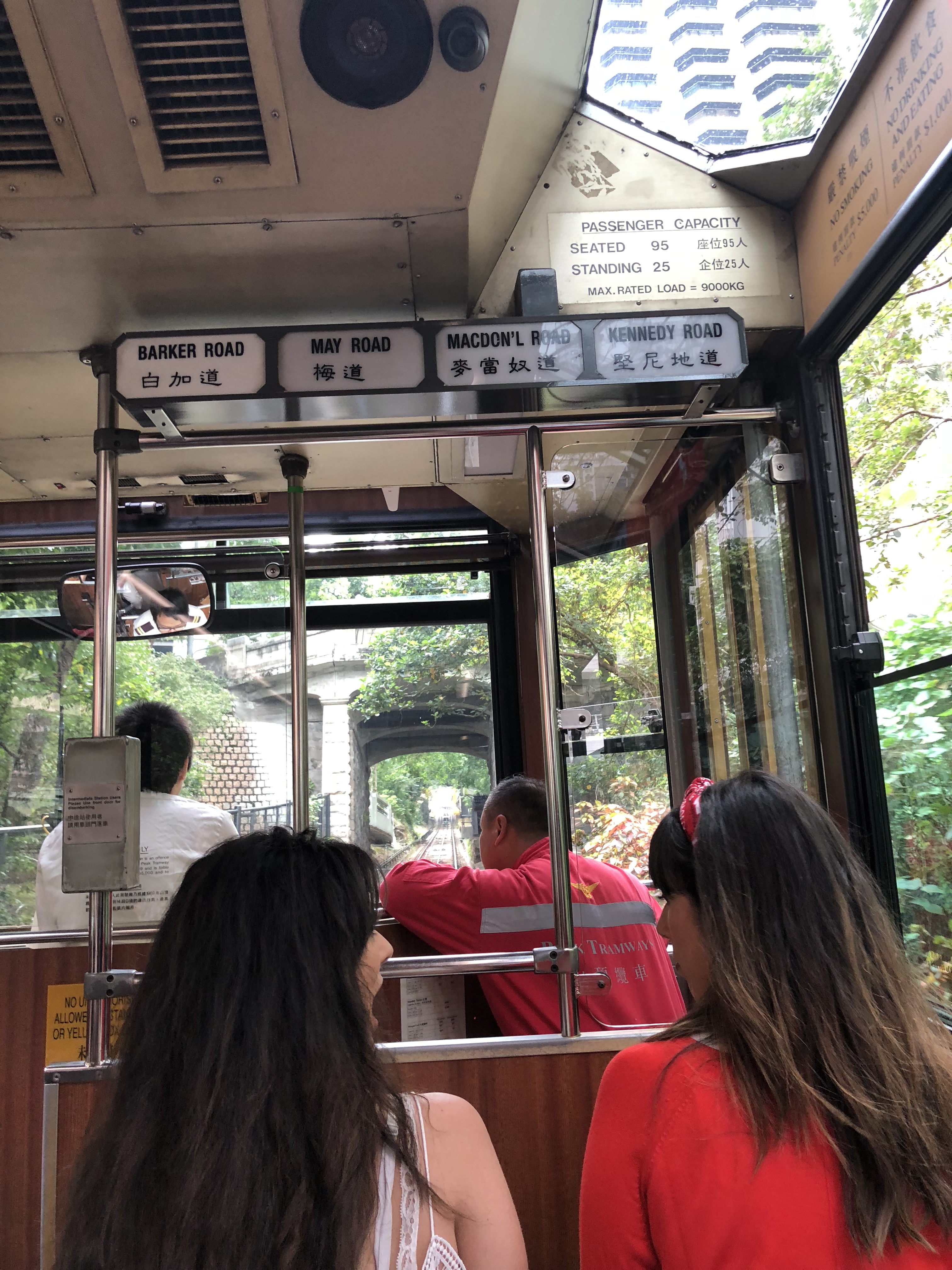 The Peak Tram. The floors are scalloped to prevent people from falling over with the steep incline.