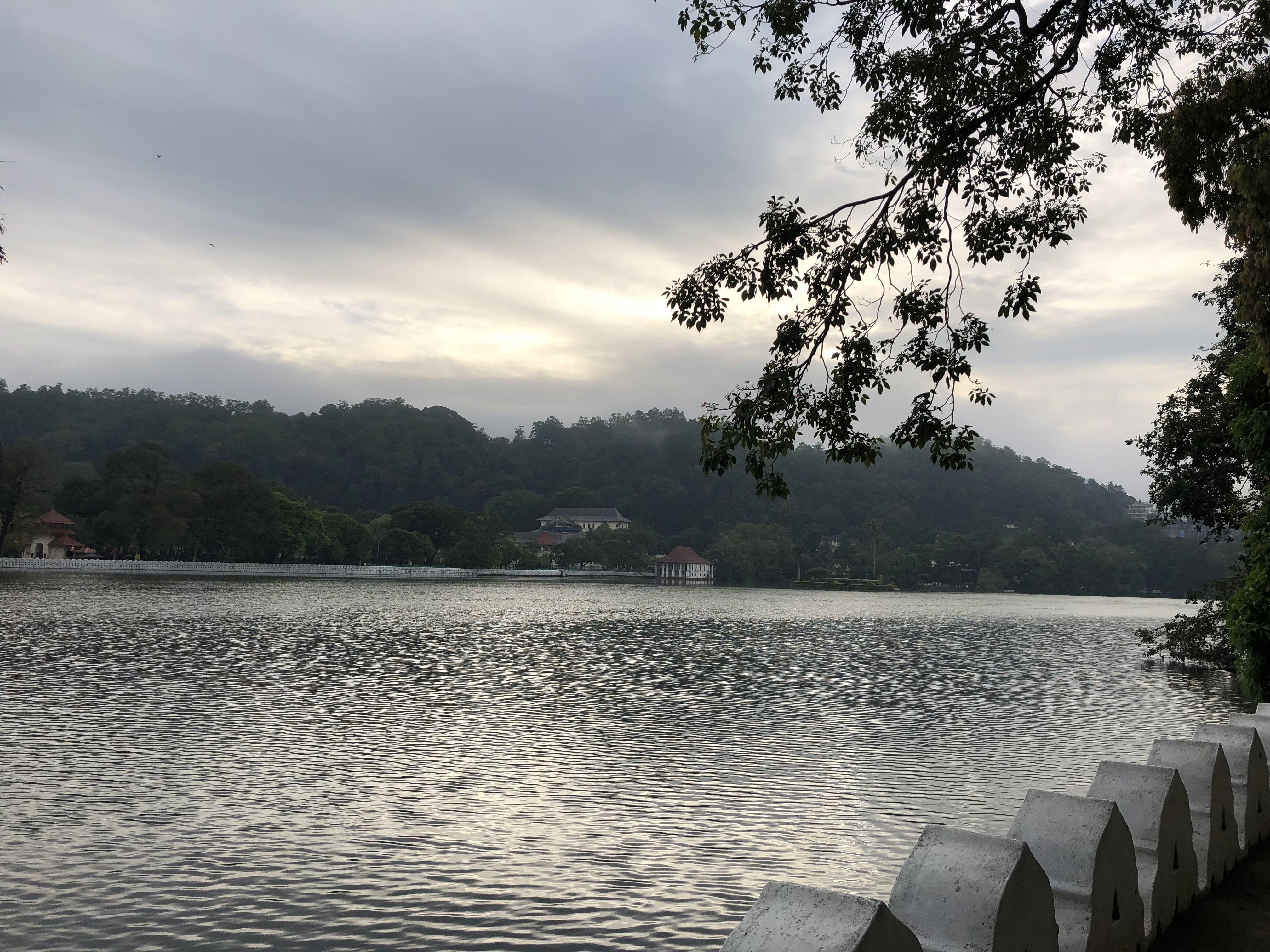 A morning view of Kandy lake and the Temple of the Tooth with some residual clouds. A lot of the lakes in Sri Lanka are man made